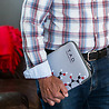 I den blixtlåsförsedda fickan utanpå kan du lägga laddare och kablar på ett och samma ställe för smidig förvaring hemma eller på resan.